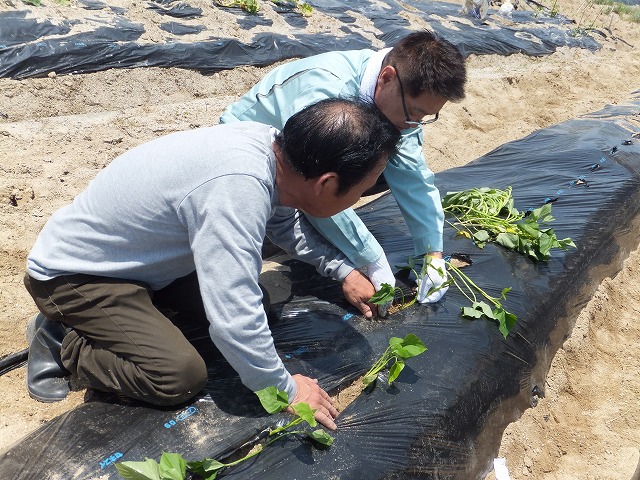 *次期青少年育成事業・農業体験へ向けて芋苗植えの実施*